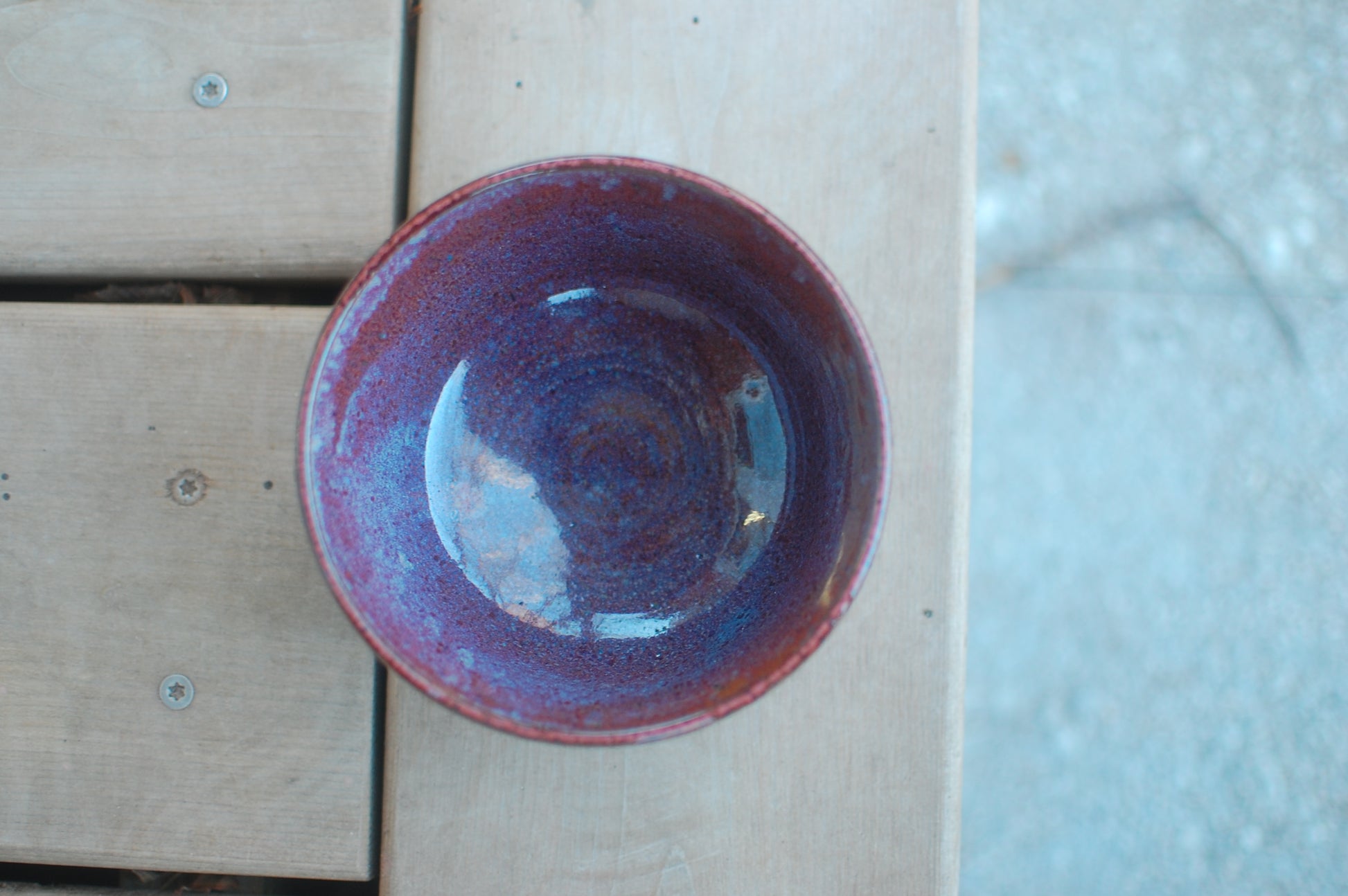 This bowl was thrown on the potters wheel, trimmed, fired, glazed and fired again. It's the perfect size for a bowl of cereal or yogurt with granola. It is 2 3/4 inches tall and 4 3/4 inches diameter at the rim.