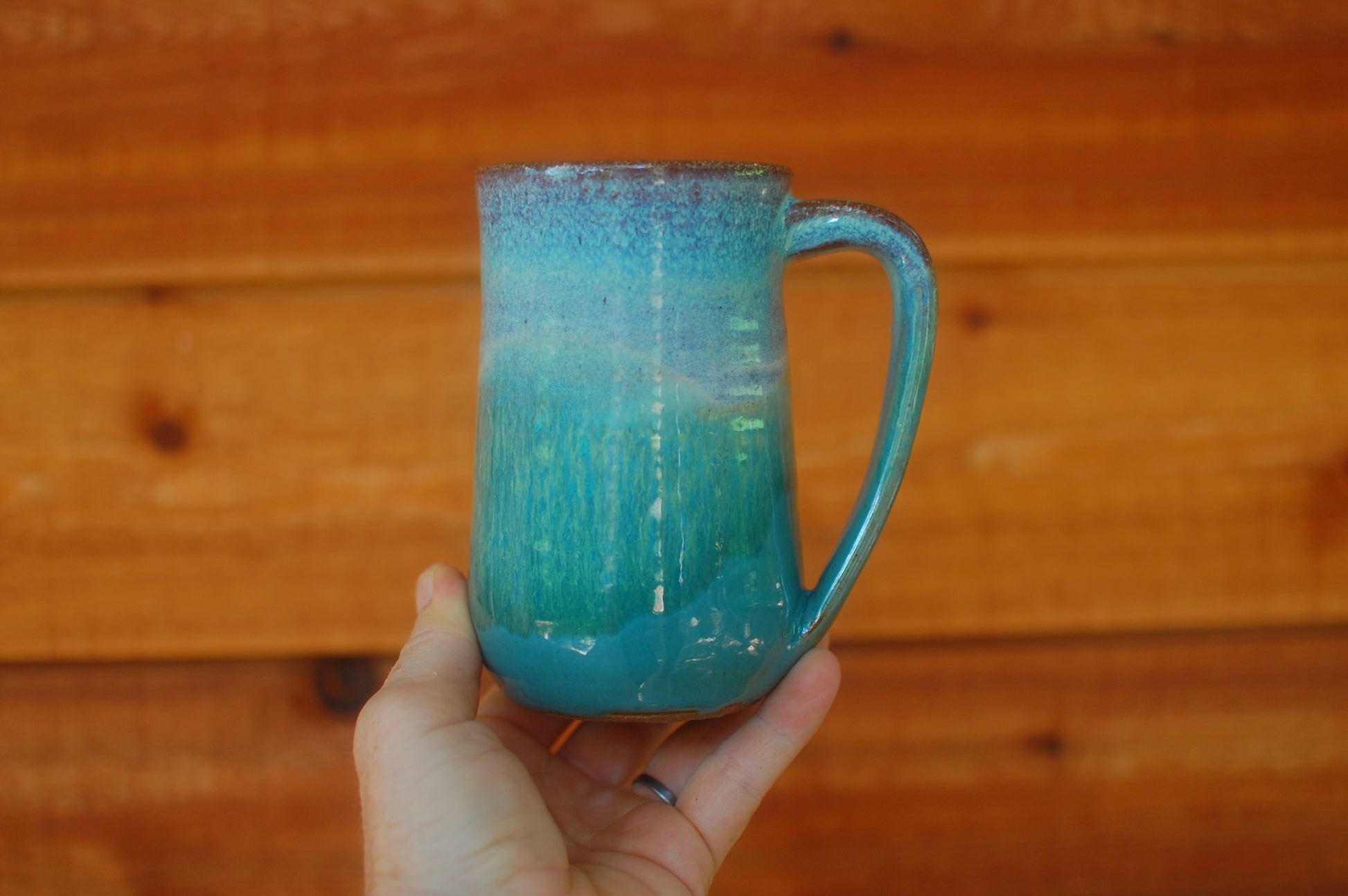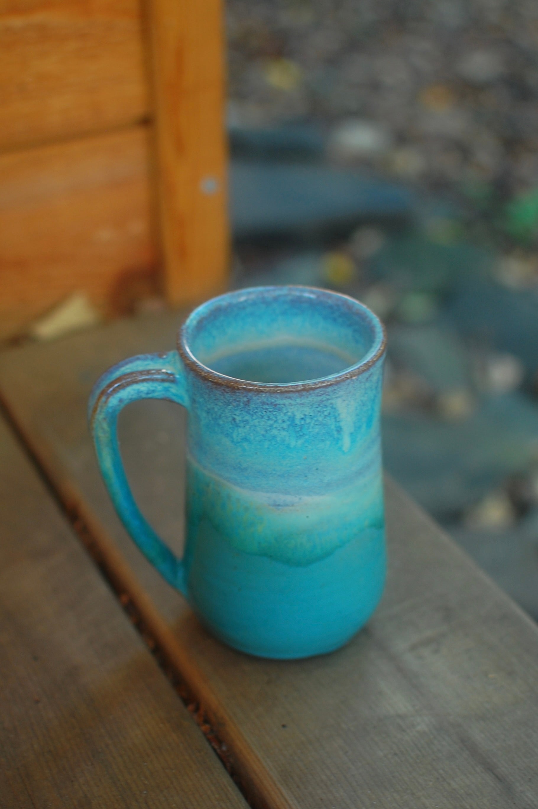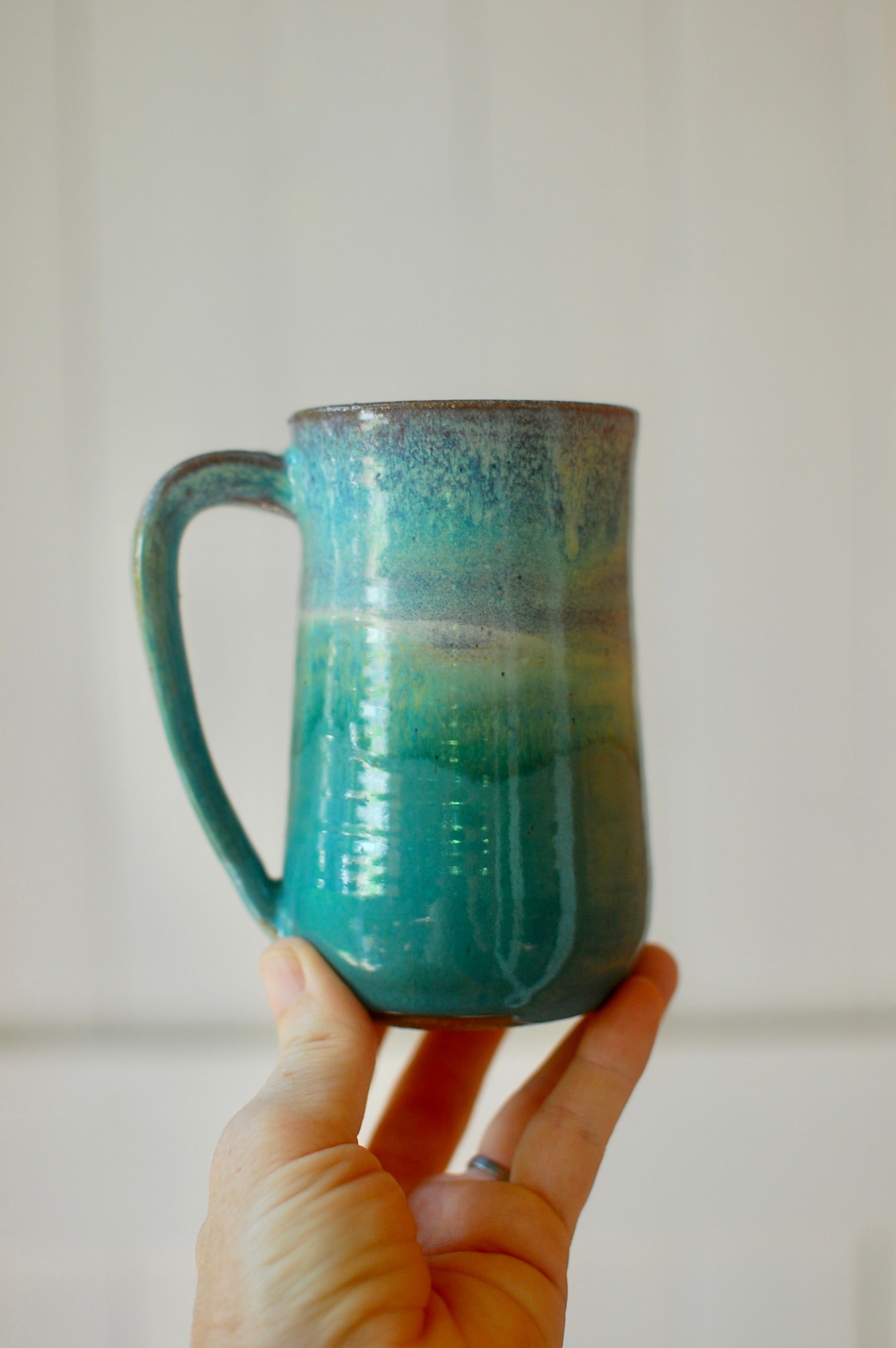 This mug was made on the potter's wheel. The glaze combination is a recent favorite.
