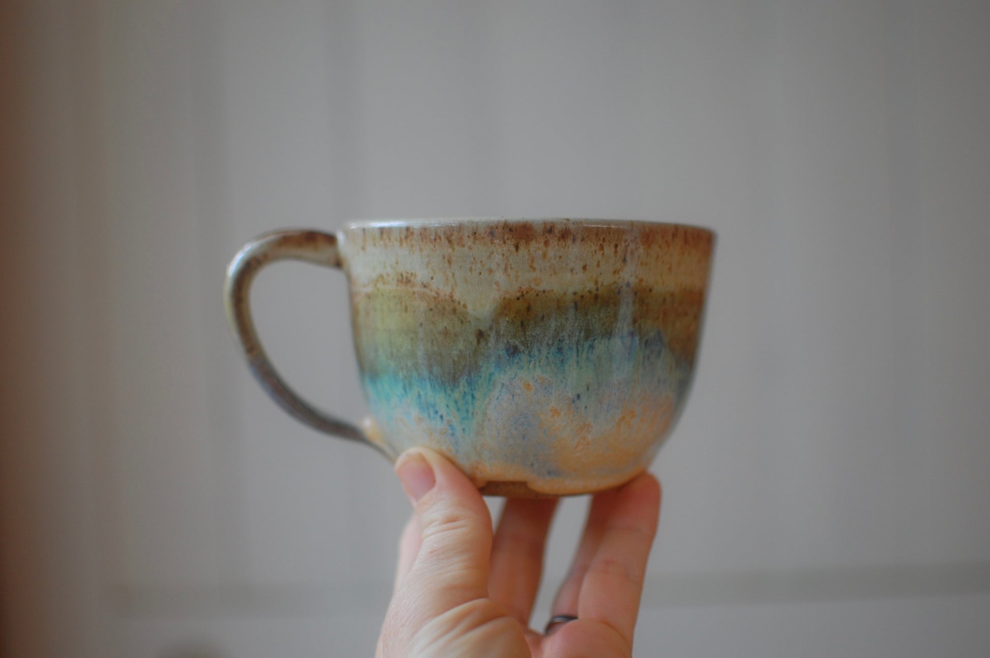 Neutral With Green Latte Bowl - Soup Bowl With Handle - Handmade Pottery - Pottery Mugs - Ceramics - Handmade Ceramics