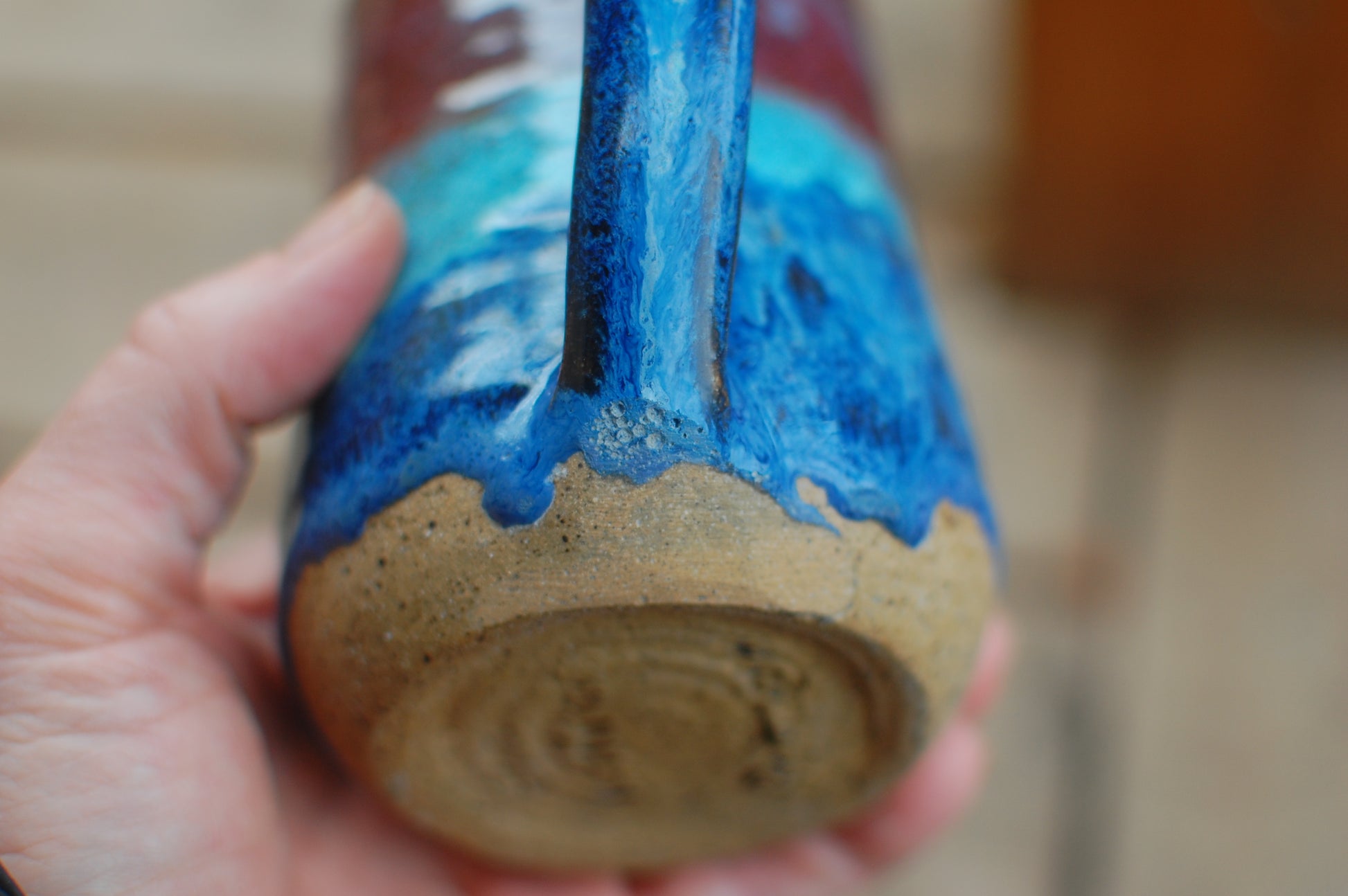 It is a second because the blue glaze ran onto the kiln shelf and I had to sand it. See pic attached.